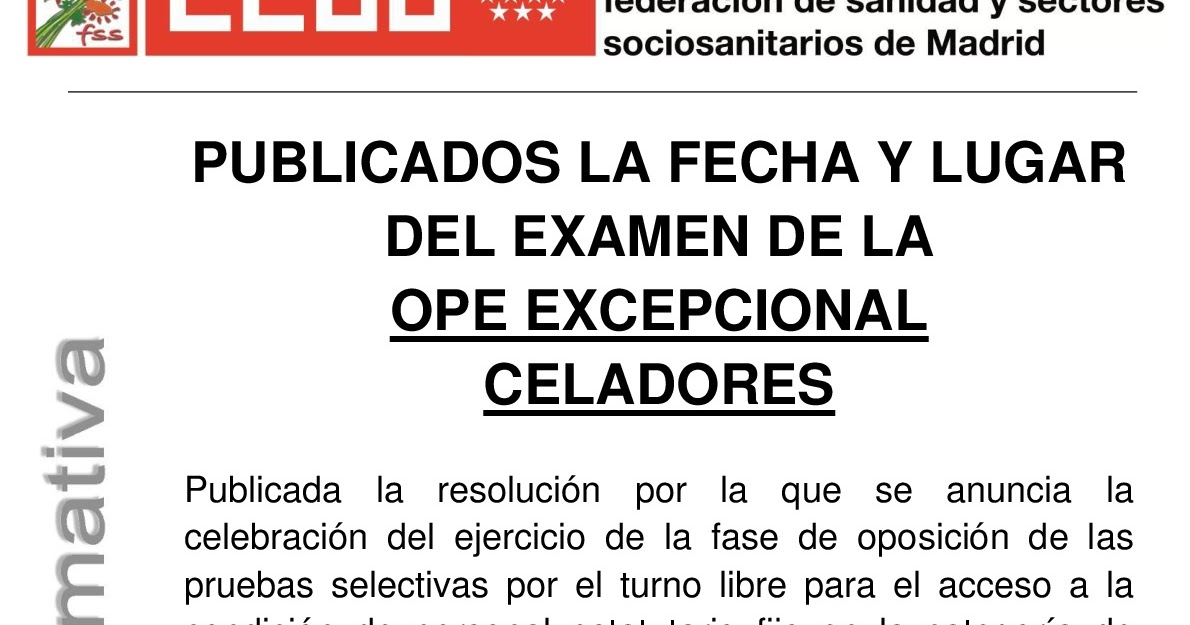 CCOO Fundación Jiménez Díaz Publicada fecha de examen OPE celadores