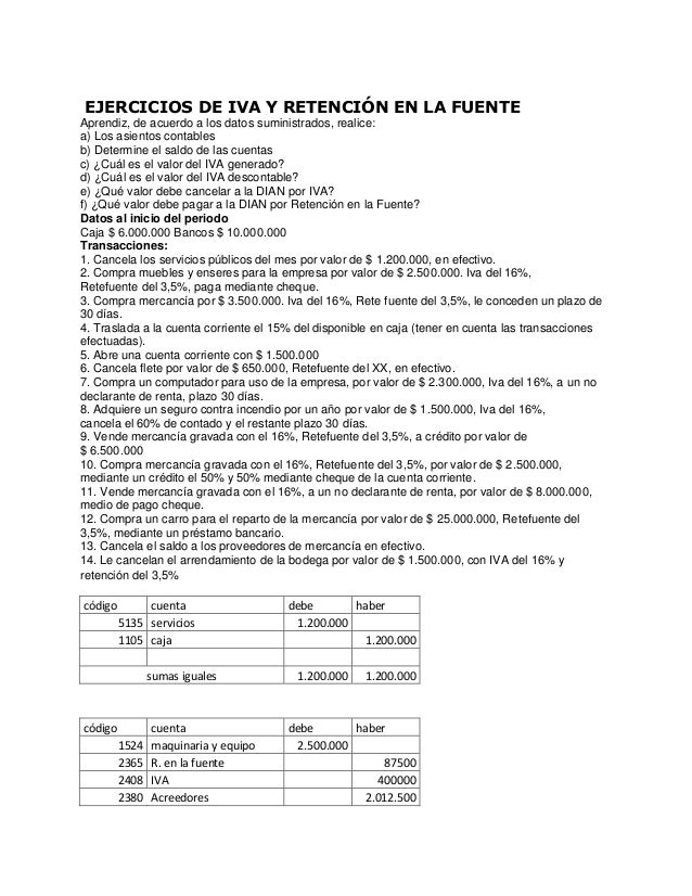Ejercicios de iva y retención en la fuente