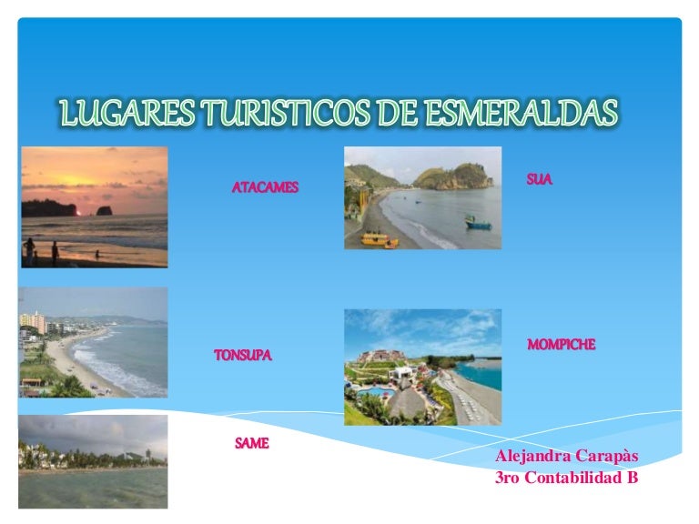 12 Lugares Turísticos de Esmeraldas. Uno de los destinos que se ha posicionado como punto turístico de distracción es Esmeraldas, por la cercanía de sus playas a la capital ecuatoriana, siendo Atacames uno de las localidades principales. Te invitamos a que conozcas más de sus playas, su gente y atractivos para que estés listo en tu.