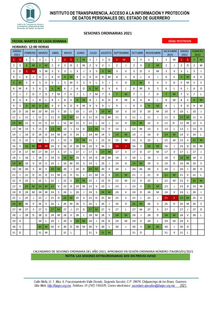 Sesión Ordinaria. 27 de febrero. 31 de mayo. 25 de agosto. 20 de septiembre. 26 de octubre. 22 de noviembre. 15 de diciembre.