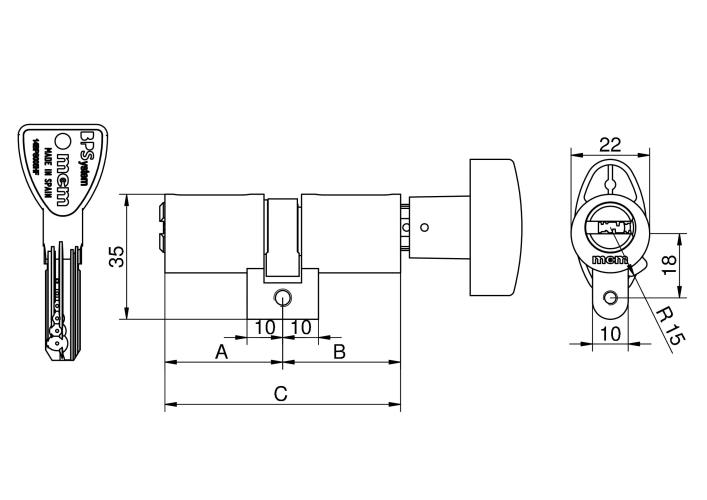 MCM BPS Perfil Suizo Cilindro con botón perfil suizo Seguridad DOMMCM, Metalúrgica