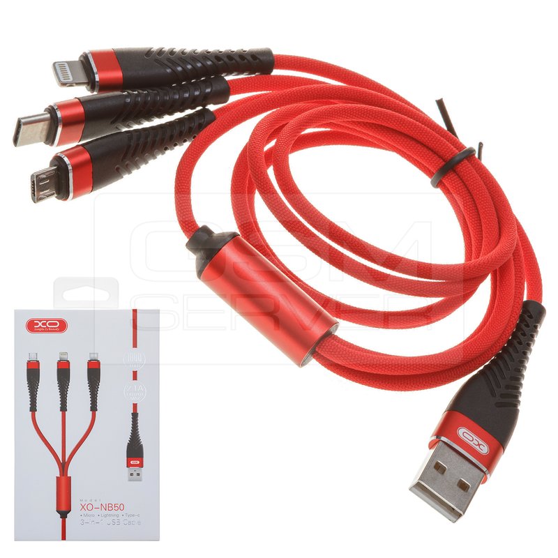 Cable USB universal XO NB50, para cargar el teléfono, con revestimiento de nylon, 3 en 1, 2.4 A