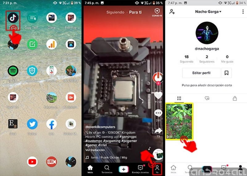 Cómo eliminar los vídeos de TikTok. Para borrar uno de los vídeos que has subid a TikTok, primero tienes que entrar en tu perfil dentro de la aplicación del servicio. Una vez en el perfil.