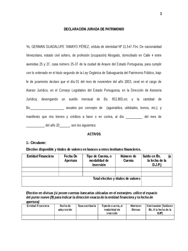 Modelo de Declaracion Jurada Contraloria Gral Rep.
