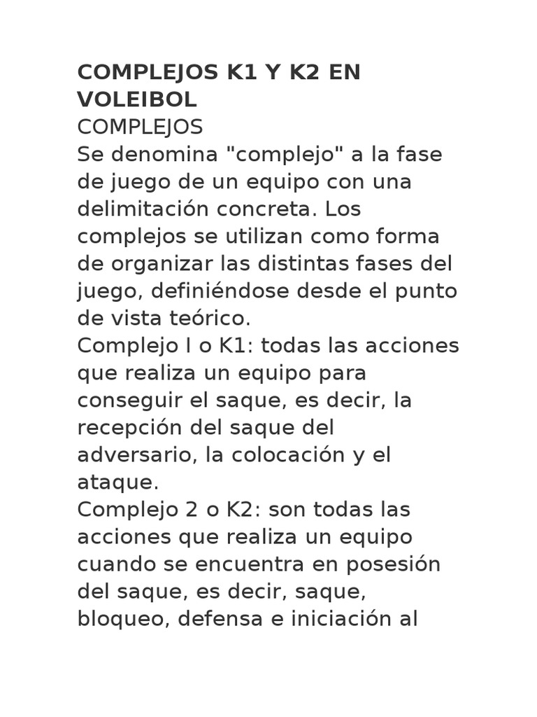 Complejos K1 y K2 en Voleibol PDF Vóleibol Deportes