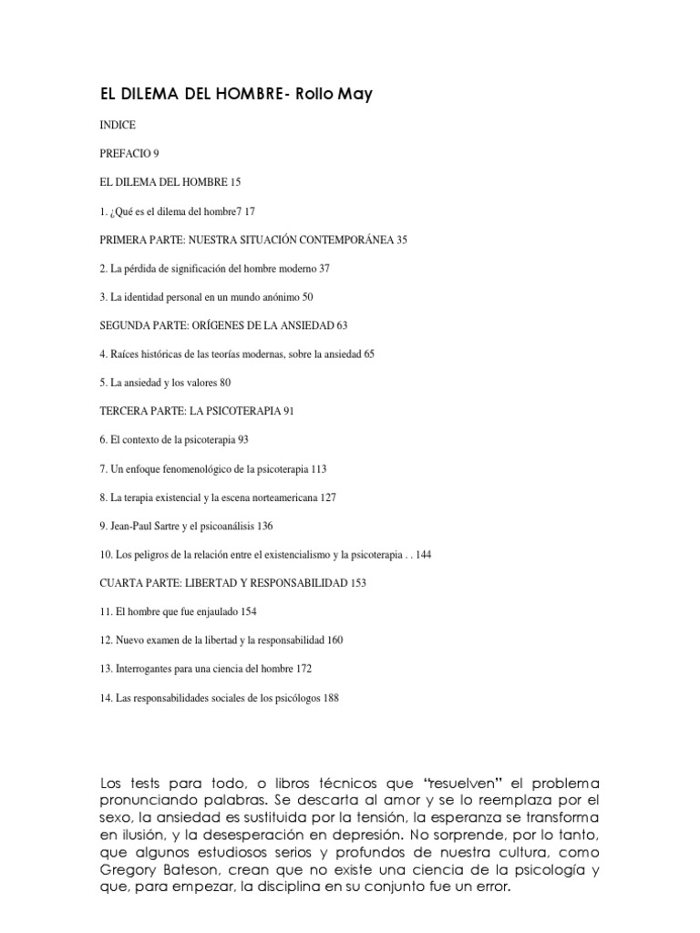 El Dilema del Hombre (Spanish Edition) [Rollo May] on Amazon.com. *FREE* shipping on qualifying offers. El Dilema del Hombre (Spanish Edition)