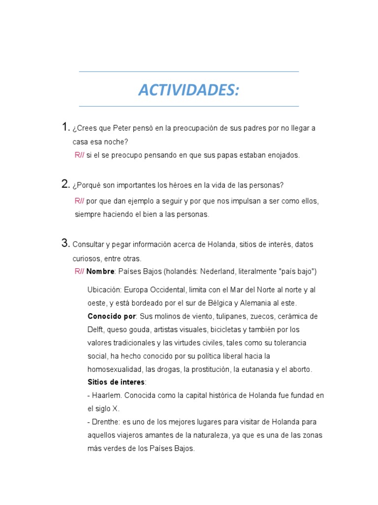 Actividad El Pequeño Héroe de Holanda Odt PDF Holanda Países Bajos