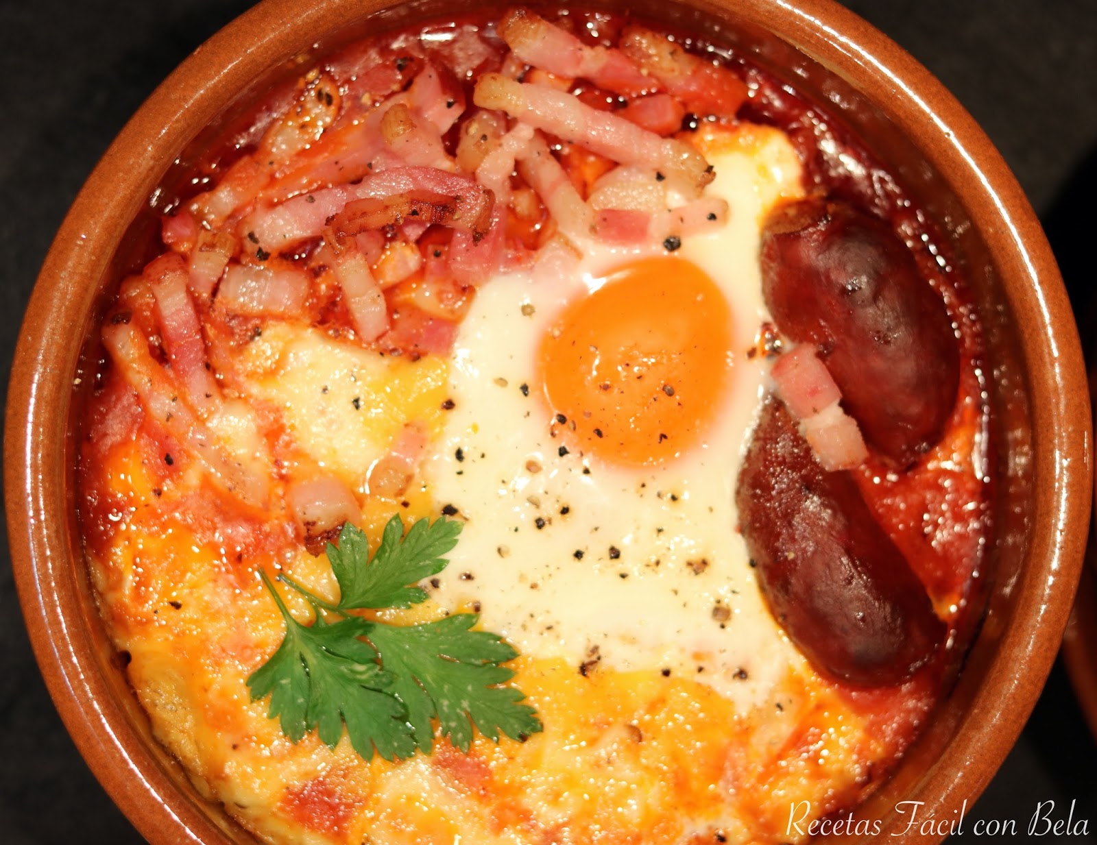Huevos al plato con chorizo, baicon y queso Recetas Fácil con Bela