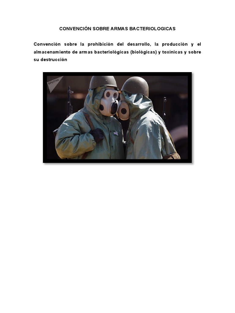 Convención sobre la prohibición del desarrollo, la producción y el almacenamiento de armas bacteriológicas (biológicas) y toxínicas y sobre su destrucción, (1972) Fuente del documento Naciones Unidas