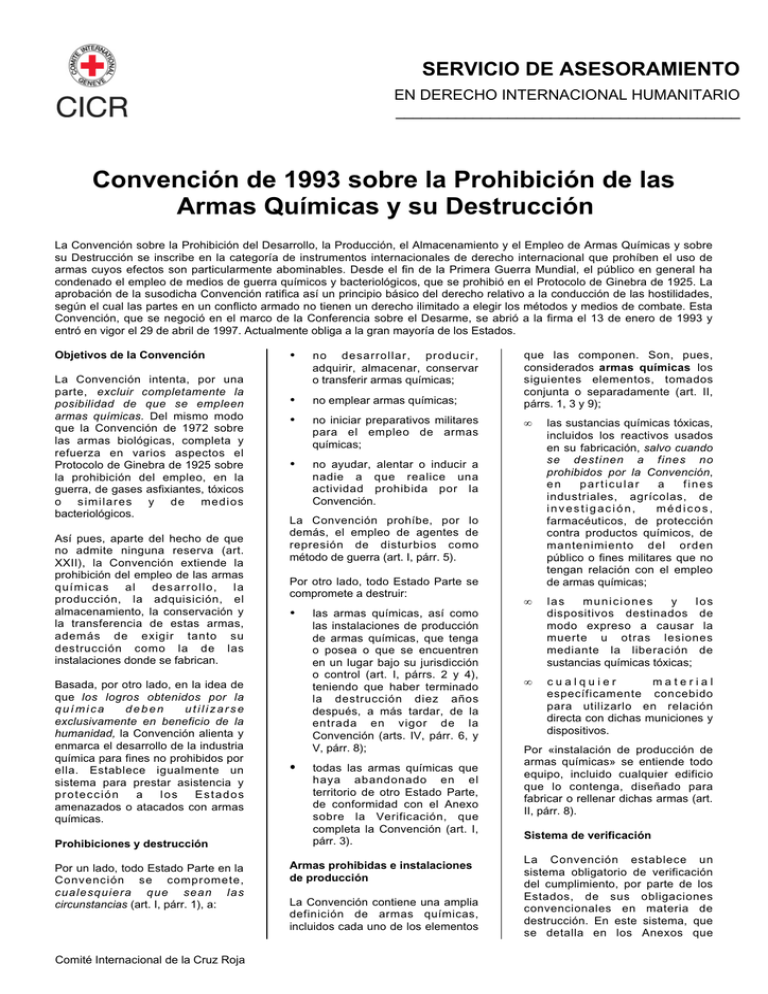 prohibición del desarrollo, la producción y el almacenamiento de armas bacteriológicas (biológicas) y toxínicas y sobre su destrucción, de 10 de noviembre de 1972, y la Convención sobre la prohibición del desarrollo, la producción, el almacenamiento y el empleo de armas químicas y sobre su destrucción, de 13 de enero de 1993.