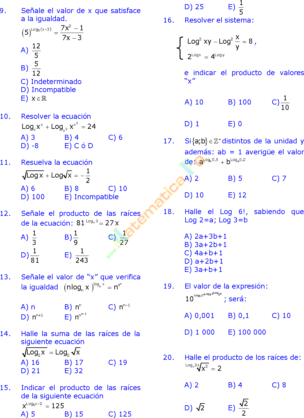 Logaritmos Problemas Resueltos Tipo Examen de Admisión « Blog del Profe