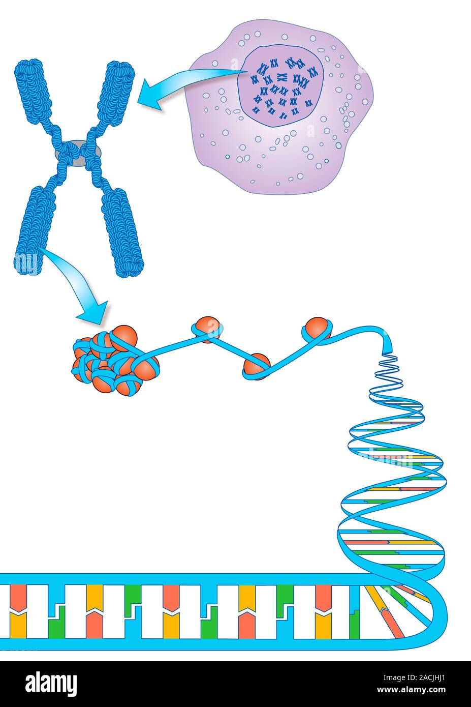 El empaquetamiento del ADN. Equipo ilustraciones mostrando cómo el ADN