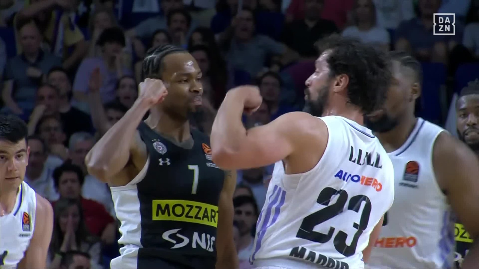 Una pelea en varios frentes que comenzó con una antideportiva de Llull obligó a dar por finalizado el partido antes de tiempo. Las imágenes son lamentables. Caliente final entre el Real Madrid.