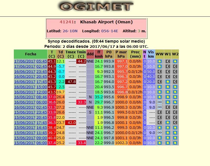 Posible record mundial de temperatura mínima más alta 44.2ºC