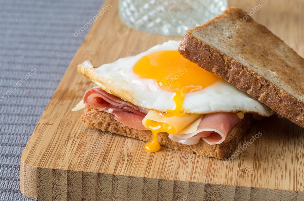 Fotos de Sandwich integral con huevo frito, jamón y queso . Imagen de © vasi_100 89777710